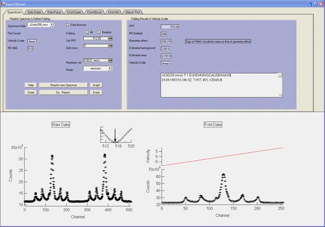 Automatic folding of spectra: triangular or sinusoidal velocity. Correction for non flat baselines up to fourth order polynomial can be taken into account.